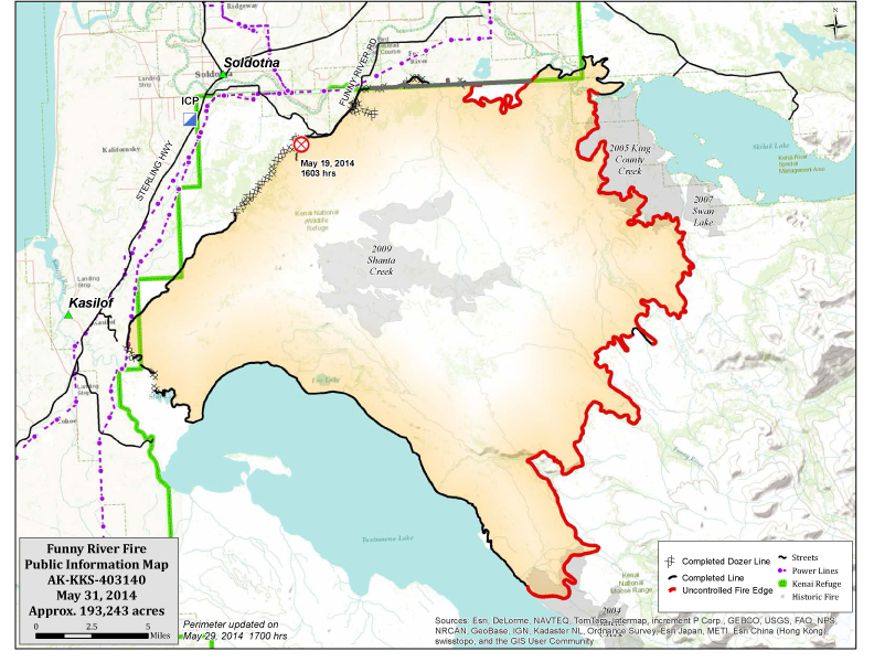 Residents and visitors are urged to continue to use extreme caution with anything that could ignite a fire. Visitors and area residents are reminded that fire crews, air and ground equipment are working in the areas of the Sterling Highway and Funny River Road.