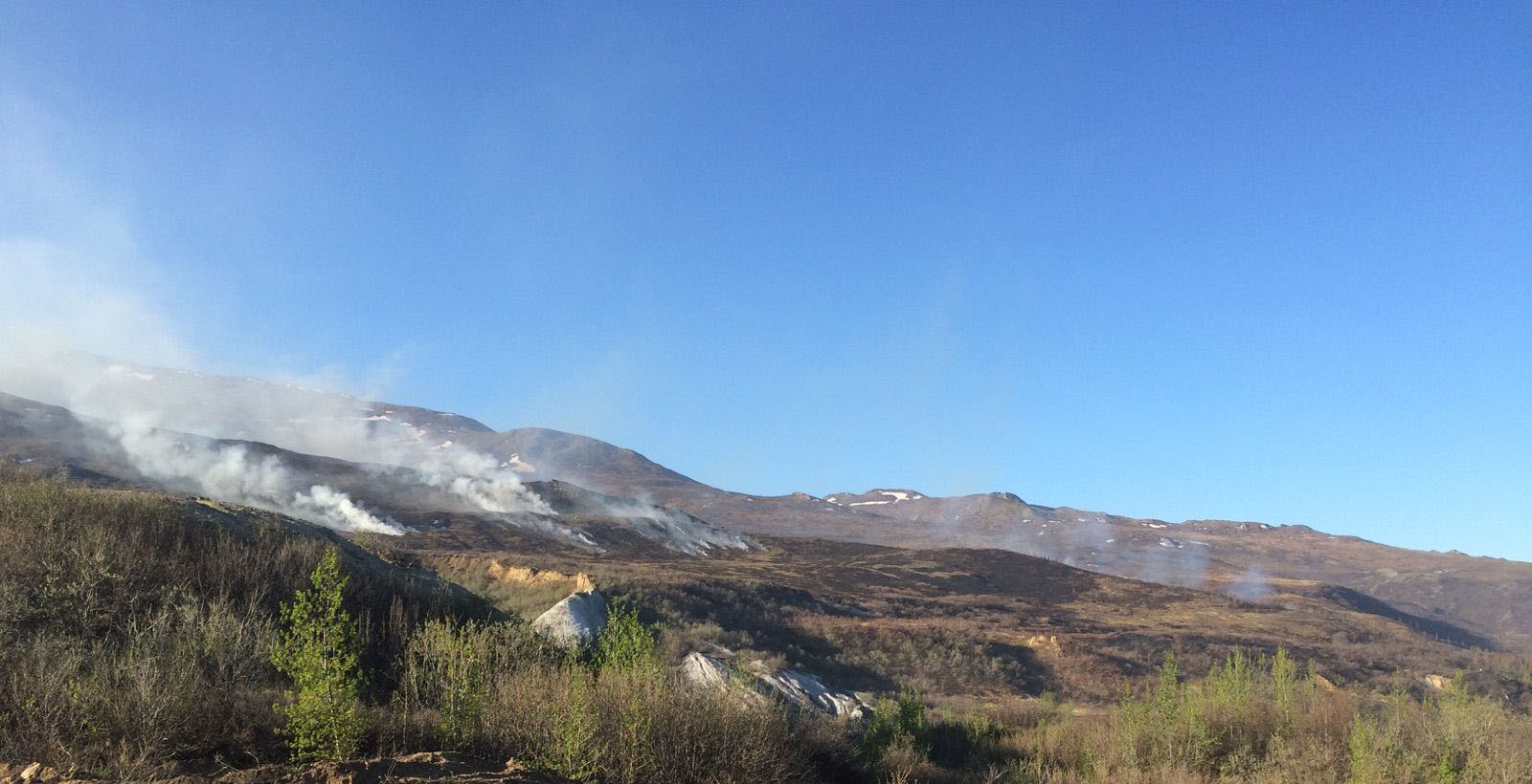As of Monday afternoon, the fire was creeping and smoldering in tundra with minimal activity in the hardwoods, reported Incident Commander Shelby Majors with the Alaska Division of Forestry. The fire is in an area that has burned several times from previous coal seam fires and no structures are threatened, he said.