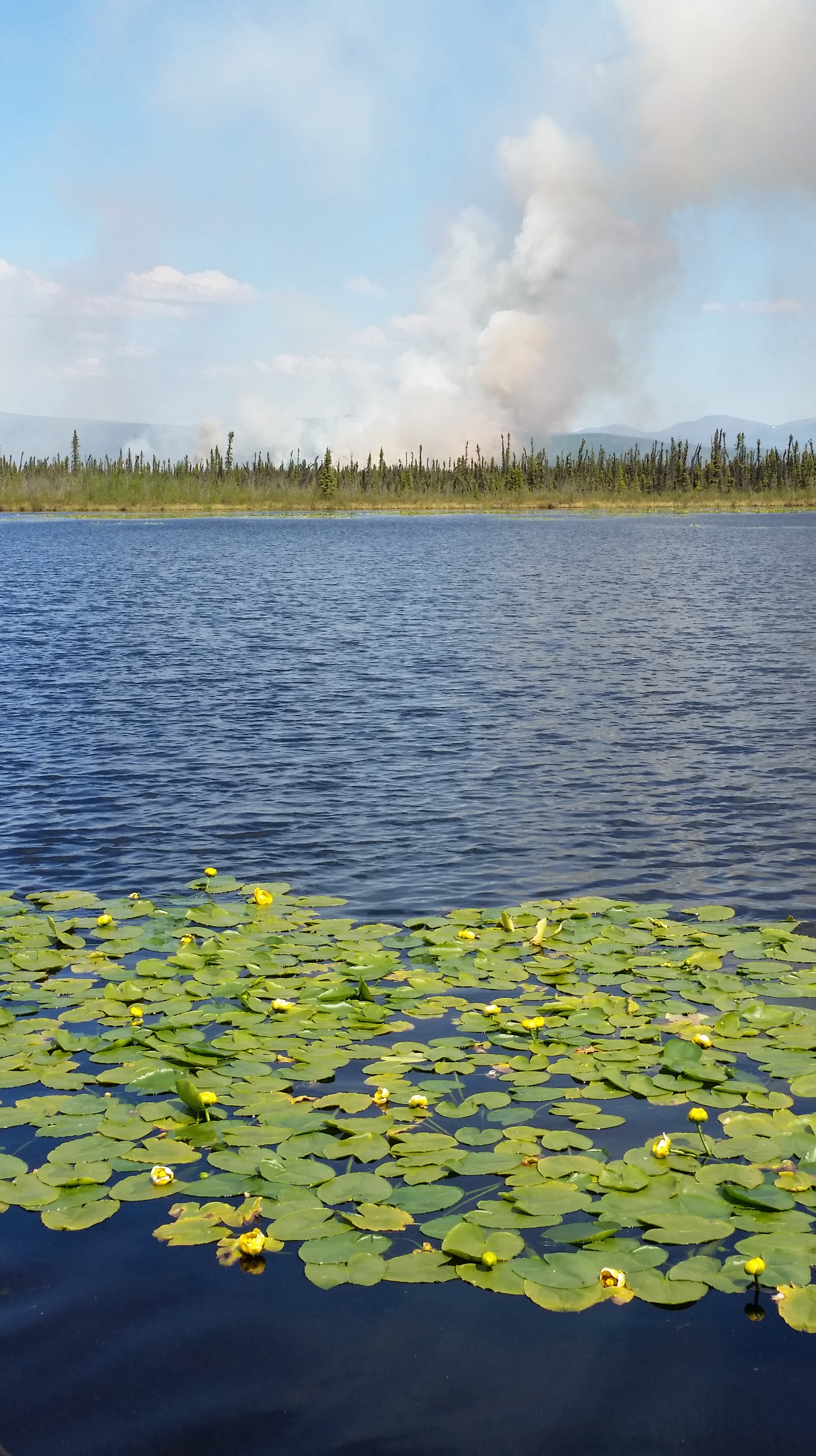 Smoke rises from the Tanana Slough Fire burning northwest of the community of Dot Lake on Monday 15, 2015. Don York/Alaska Division of Forestry