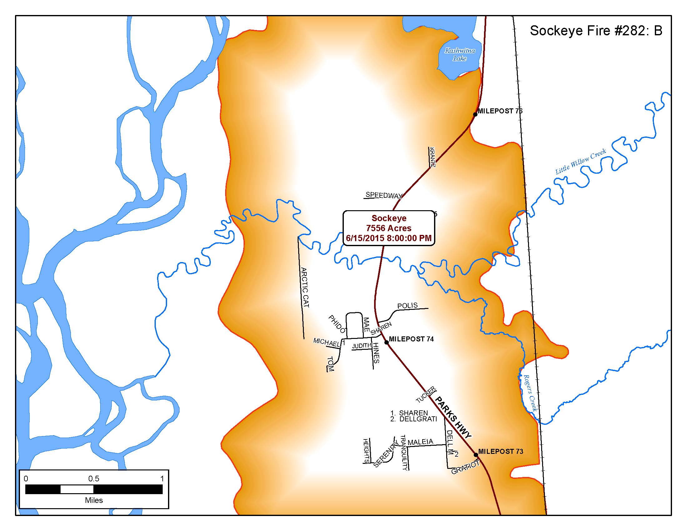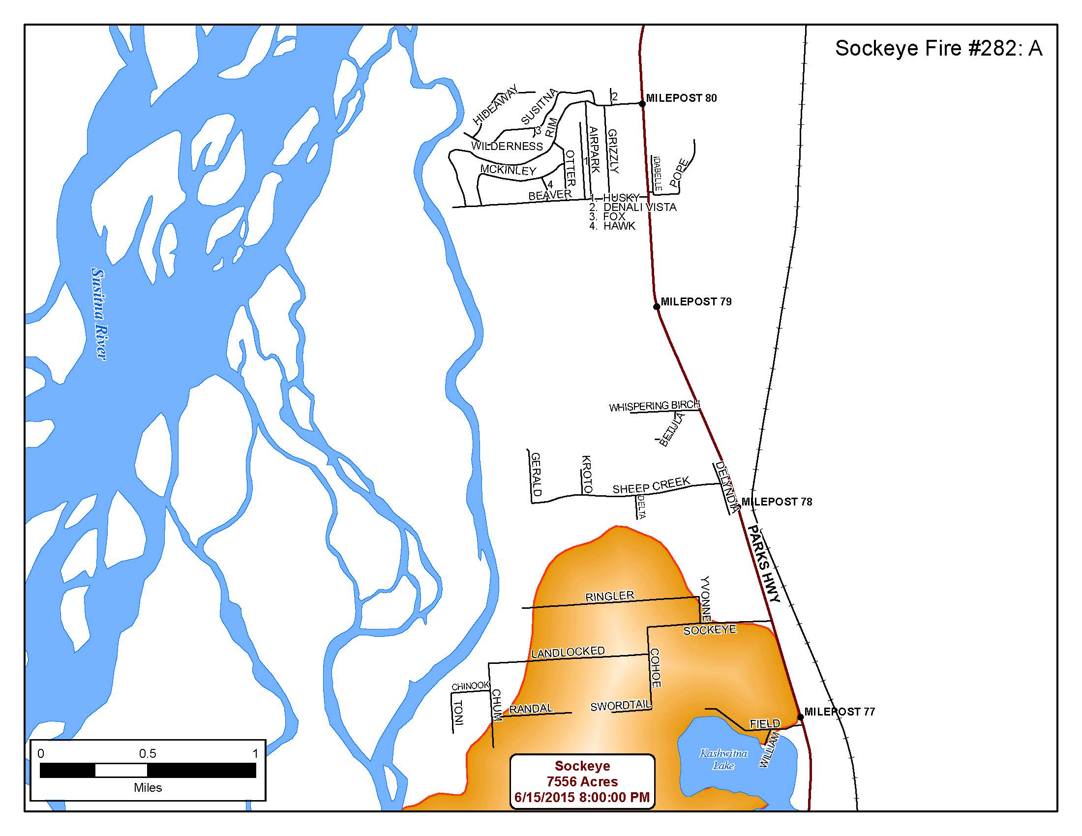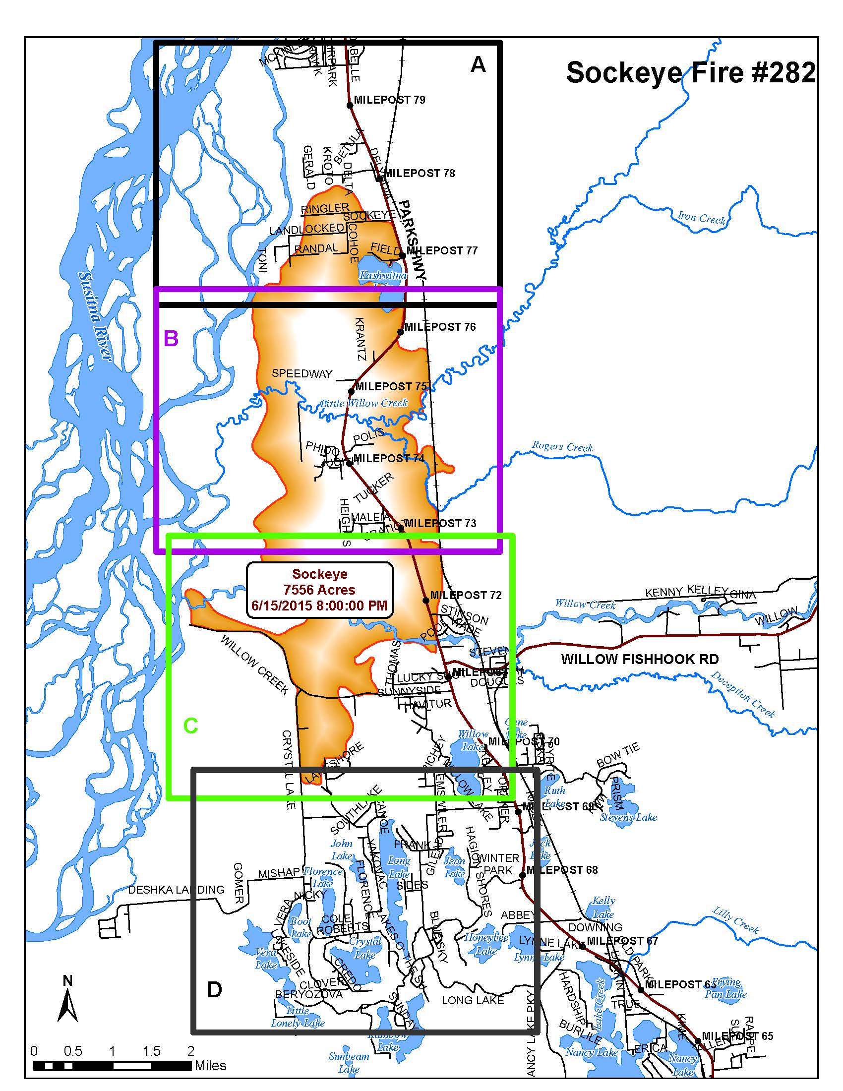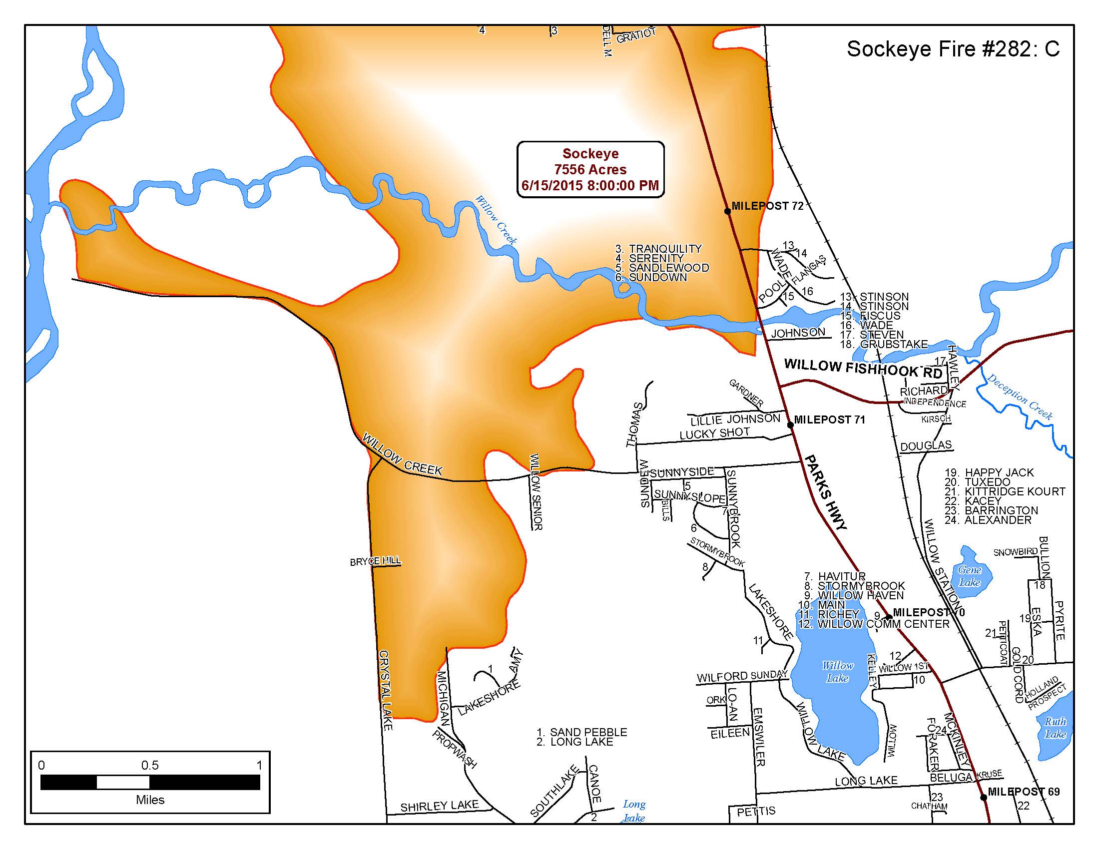 Sockeye Fire: Detailed maps of the Fire Area By m1clark on June 16, 2015 Detailed maps of the area within and adjacent to the fire perimeter. Share this:Share Click to share on X (Opens in new window) X Click to share on Facebook (Opens in new window) Facebook Like Loading...‹ Card Street Fire forces evacuations in Kenai Keyes subdivisionFire prevention orders issued for Alaska BLM lands ›Categories: AK Fire InfoTags: Alaska, Alaska Division of Forestry, Sockeye Fire, Willow