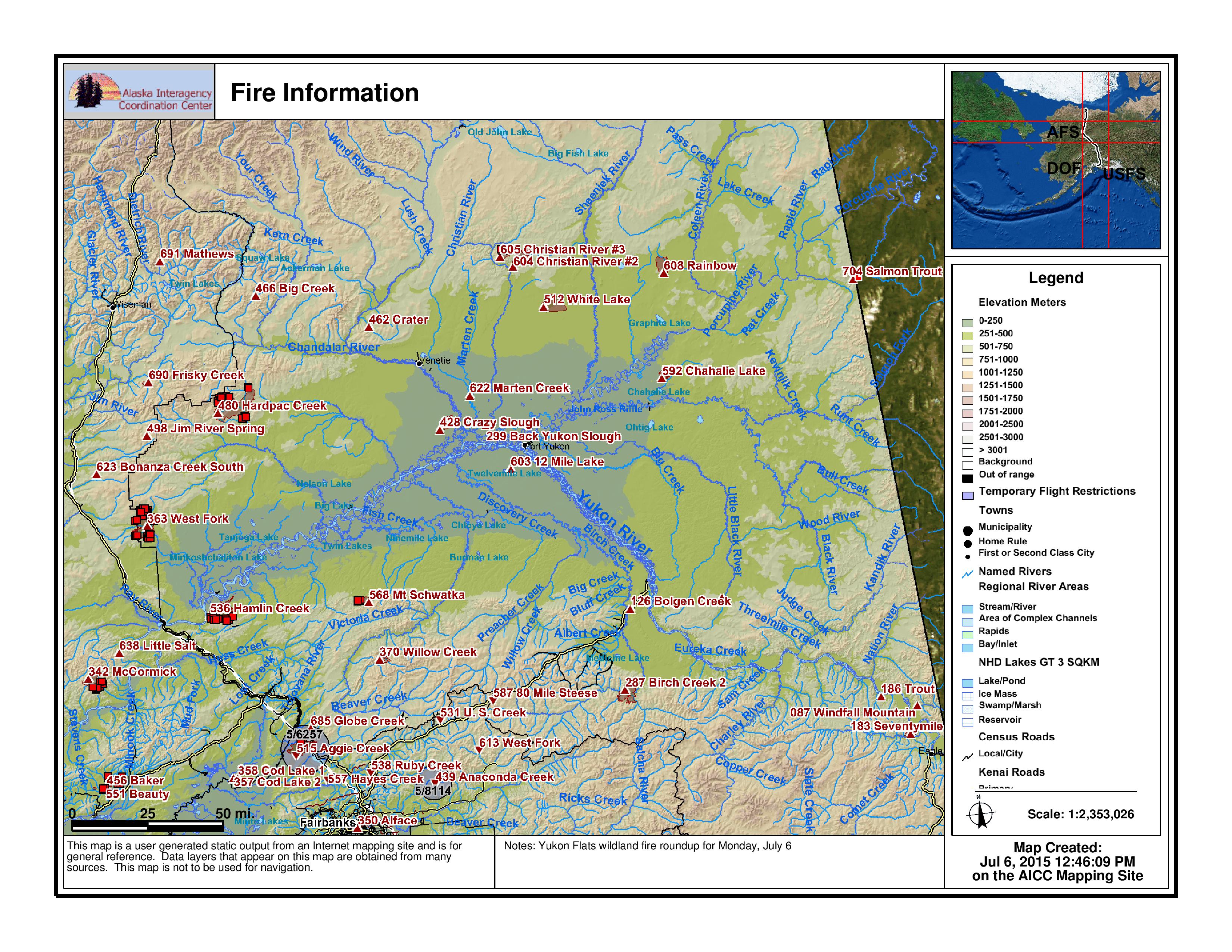 noon–A roundup of fires around the Yukon Flats that have updated information from Sunday