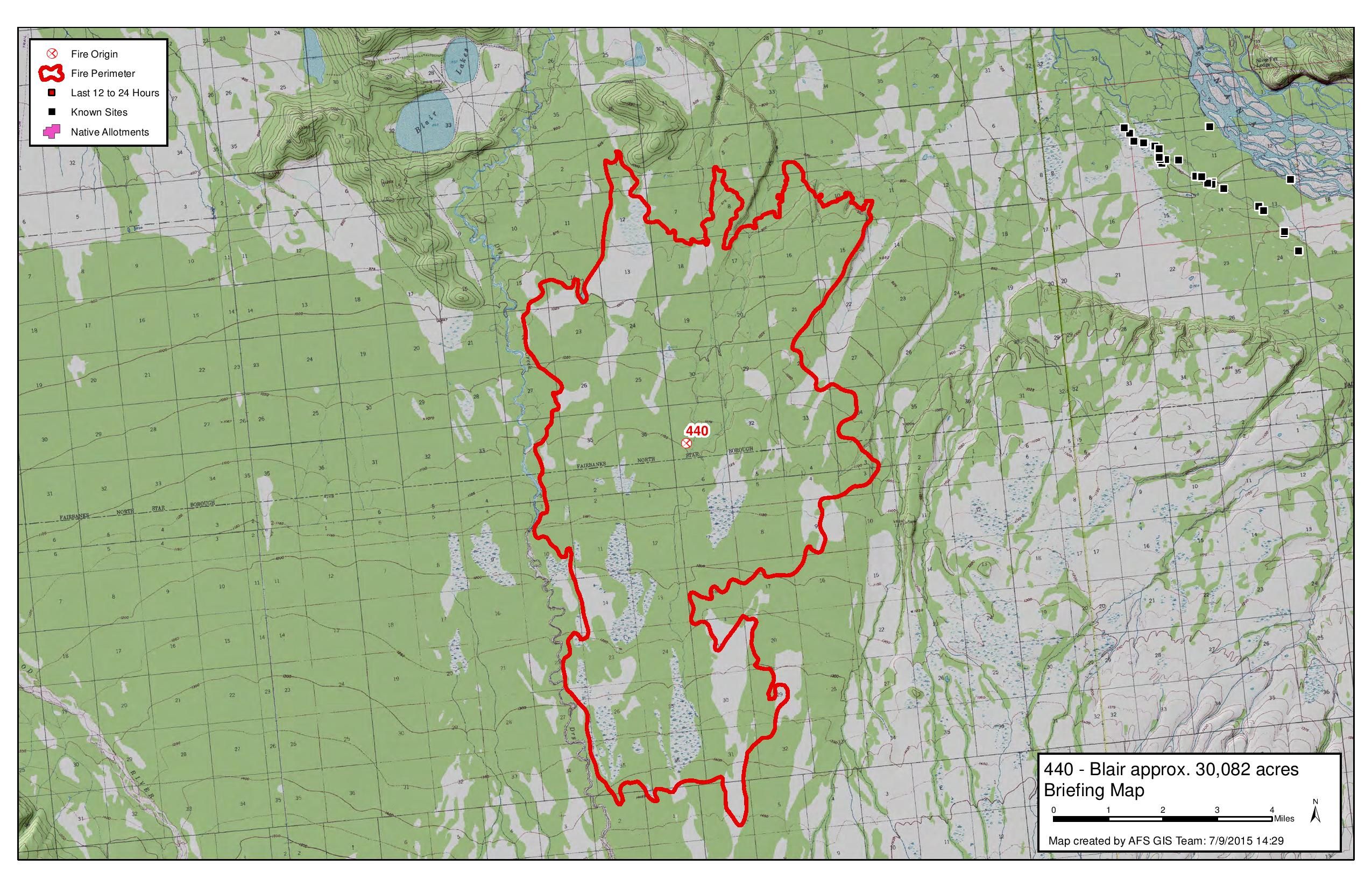 Michigan Creek DOF: The Michigan Creek Fire started on June 17, approximately 38 miles northeast of Delta Junction. The fire is remains at 9,637 acres. Fire activity has moderated with the return of cooler temperatures and higher humidity. Primary concerns are the culture and historic sites to the southwest. Division of Forestry personnel will continue aerial monitoring daily.