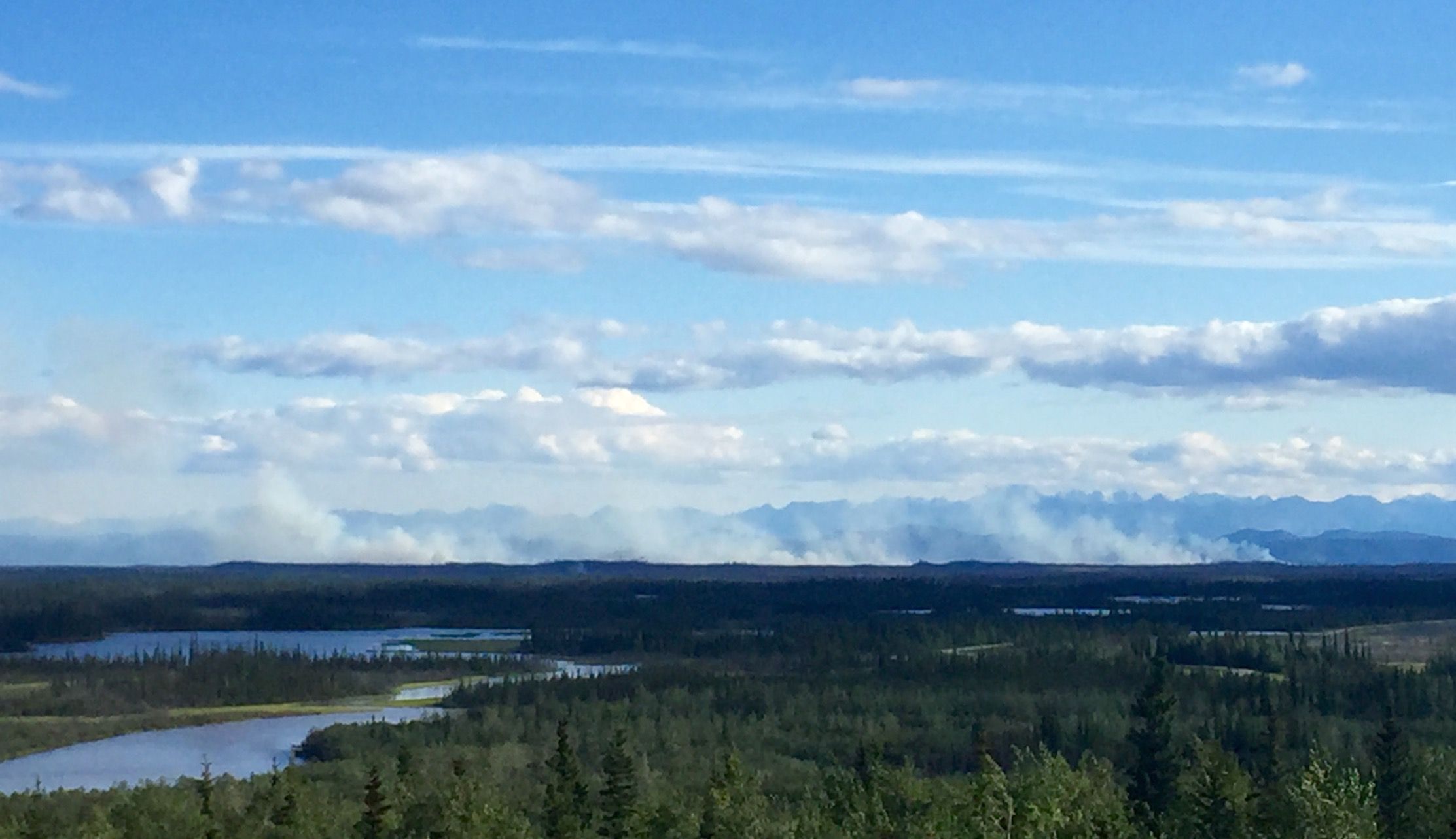 (Tok, AK) – Afternoon winds in the Tok area increased fire activity on the Chisana 2, Long Lake and Tetlin Hills Fires yesterday. Due to the warming trend, smoke can be seen from the Alaska Highway. Containment lines continue to hold on the fires despite the warmer windy weather.