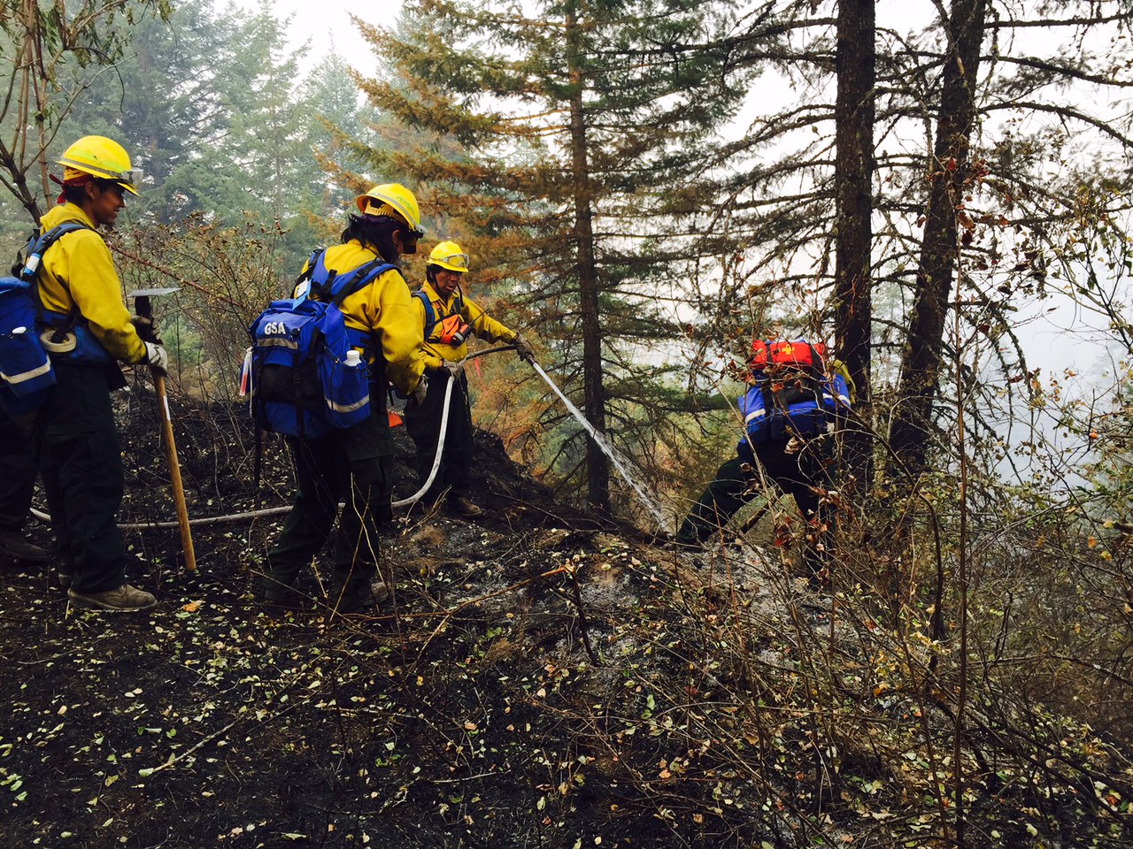 As you can see from the pictures, the crews are working in steep country, which Theisen said is heavily populated with deer. In fact, in an email he sent an hour ago Theisen, who is acting as the crew representative for the Allakaket Crew, said that four deer just ran past the crew as they were working. While Alaskan firefighters are used to walking on tundra, which is one of the biggest challenges Lower 48 firefighters face when coming to Alaska, the steep, rocky terrain in the Pacific Northwest takes some getting used to when Alaska crews head south.