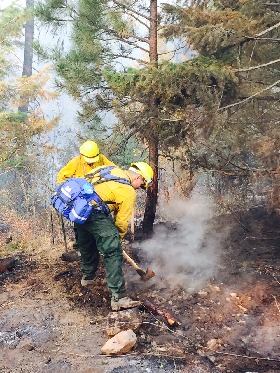 Members of the Allakaket Type 2 Crew do mop up work on the Clearwater Complex in northwest Idaho on Thursday. Photo by Steve Theisen.