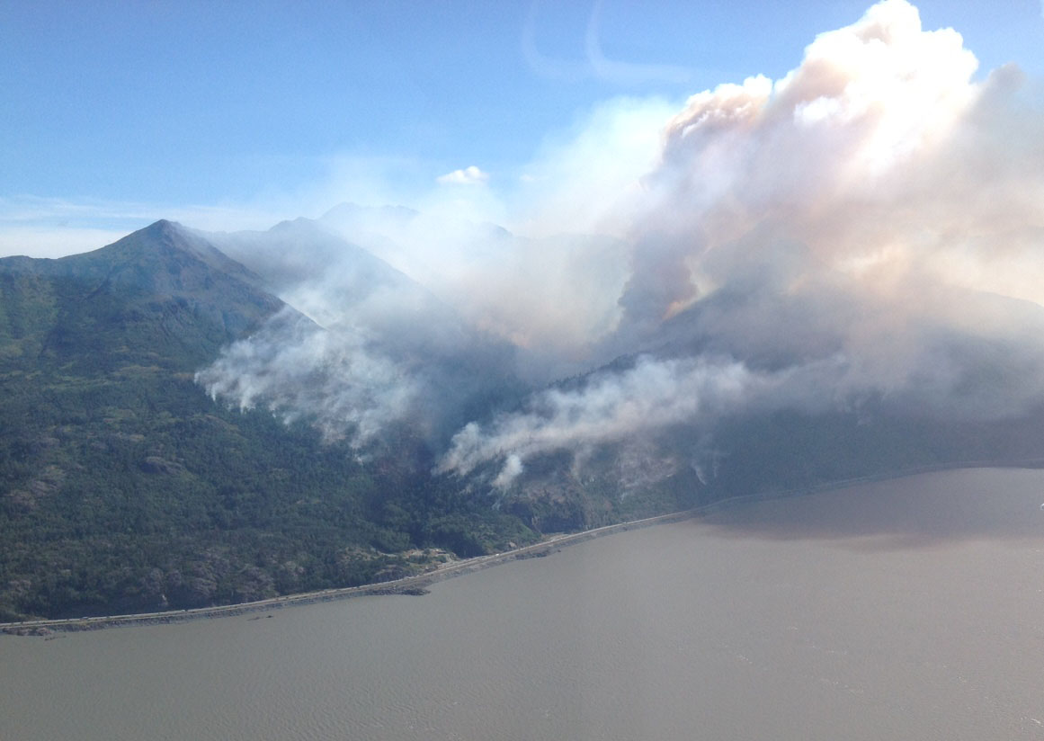 A photo of the McHugh Fire south of Anchorage along the Seward Highway taken at approximately 11 a.m. The Alaska Division of Forestry is now estimating the fire at 500-600 acres. Jordan Jordet/Alaska Division of Forestry