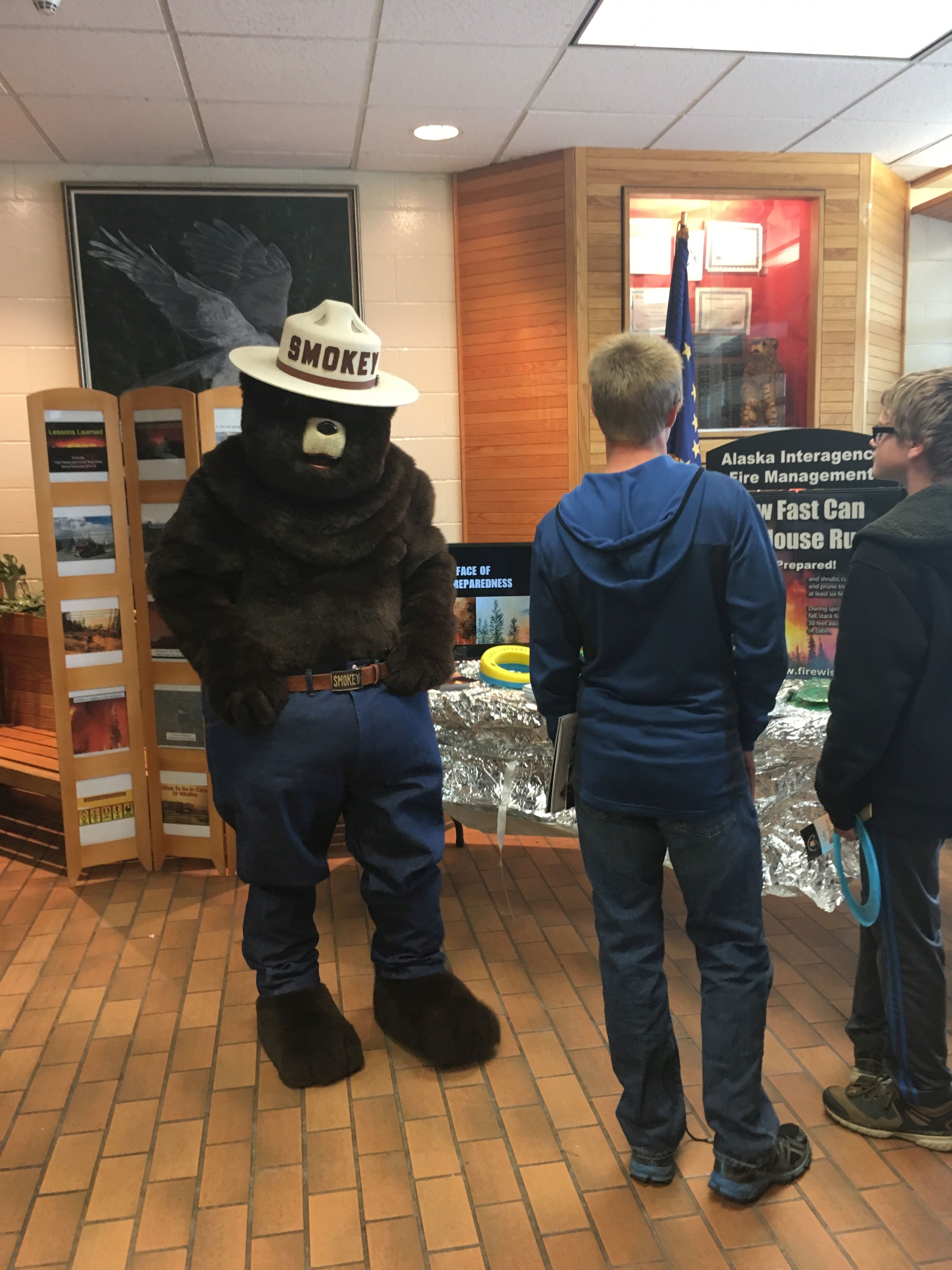 Smokey talking to kids about being FireWise at the Open House in Sterling. Photo Credit: Celeste Prescott