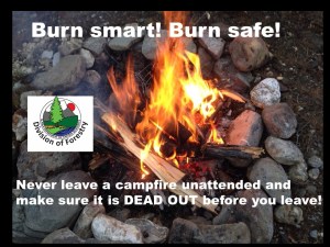 If you have a campfire, please make sure it is placed on dirt or gravel, keep it small, never leave it unattended and make sure it is completely extinguished before you leave by drowning it with water and stirring it until it is cold to the touch. Also, be sure to adhere to the Alaska Division of Forestry’s burn permit guidelines if you plan to do any kind of burning. Call your local forestry office or check online at https://dnr.alaska.gov/burn to make sure there are no burn suspensions in effect where you live.