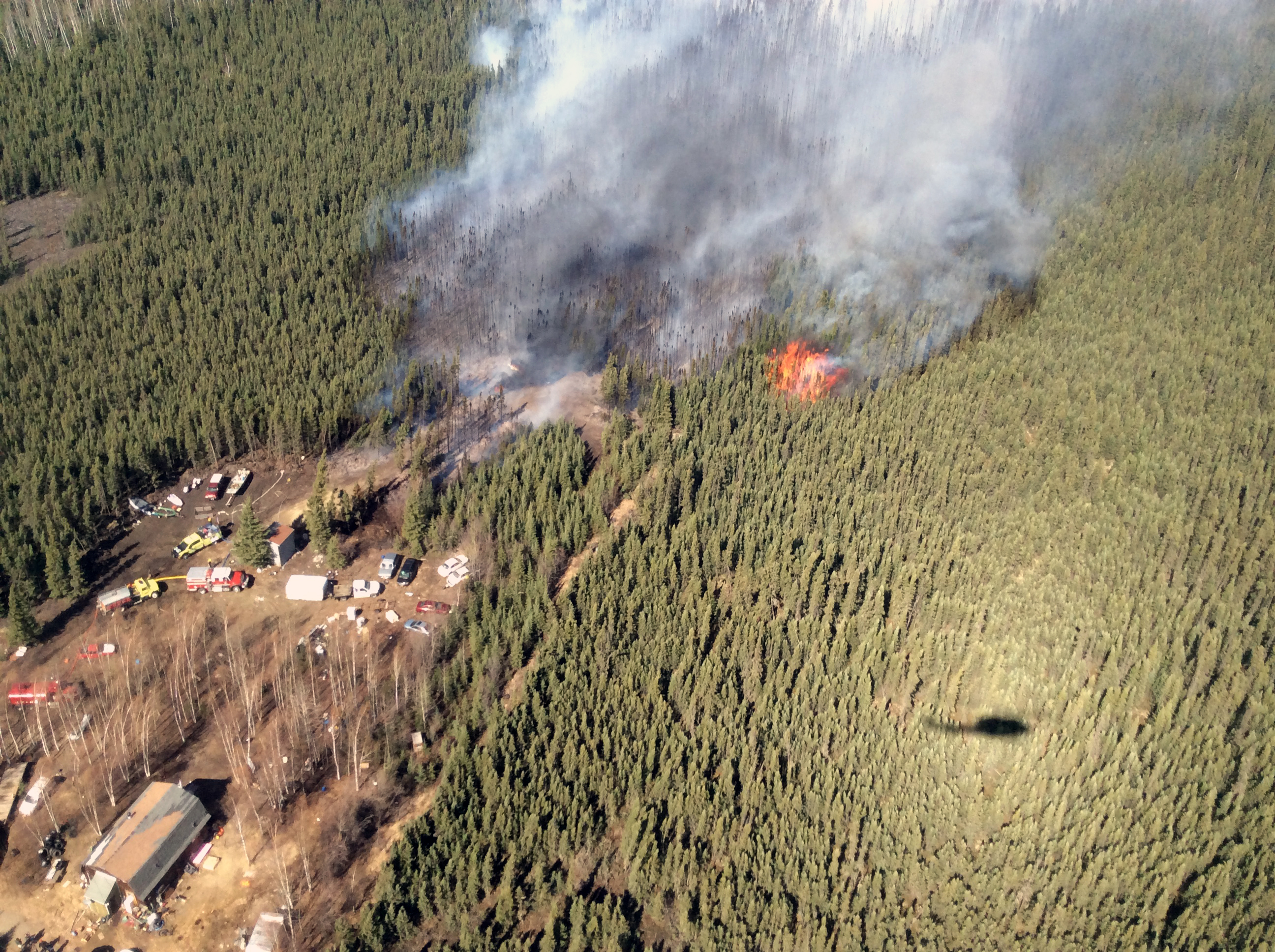 Fire activity slowed once the fire hit the timber and firefighters from the Alaska Division of Forestry, BLM Alaska Fire Service and the Rural Deltana Fire Department were able to keep it from threatening any homes. A Division of Forestry air tanker from Palmer was called in and dropped at least two loads of retardant around the blaze to help keep it from spreading further.