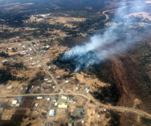 This aerial photo of the Nikolaevsk Fire shows the fire moving away from nearby structures. The fire is in close proximity to the village of Nikolaevsk on the southern end of the Kenai Peninsula near Anchor Point. Jason Jordet/Alaska Division of Forestry