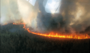 A flame front burns through black spruce in this aerial photo of the Taixtsalda Hill Fire taken Monday. Jason Jordet/Alaska Division of Forestry