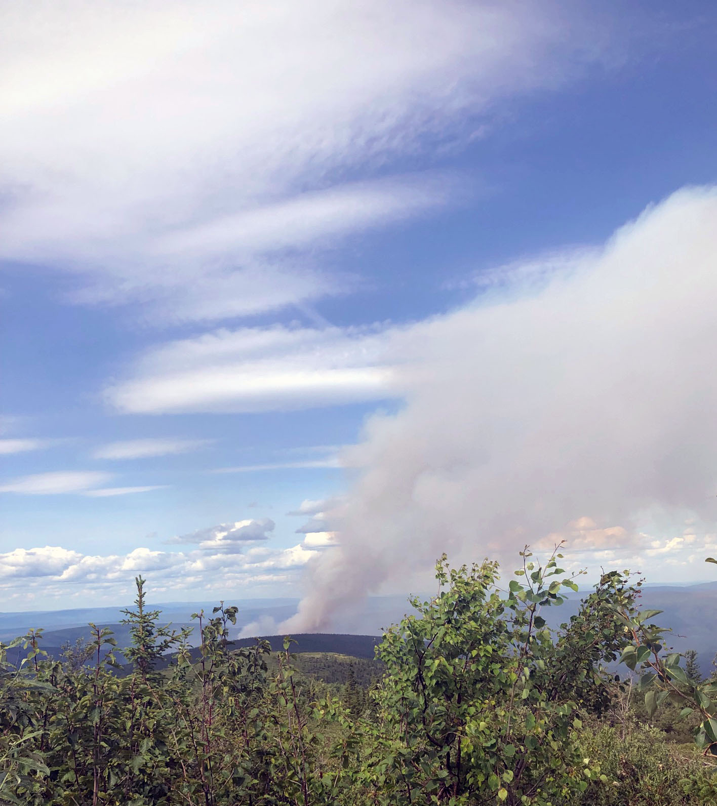 A smoke column rises from the Shovel Creek Fire Tuesday afternoon, June 25, 2019 as viewed from atop Murphy Dome northwest of Fairbanks. Photo by Sarah Saarloos/Alaska Division of Forestry