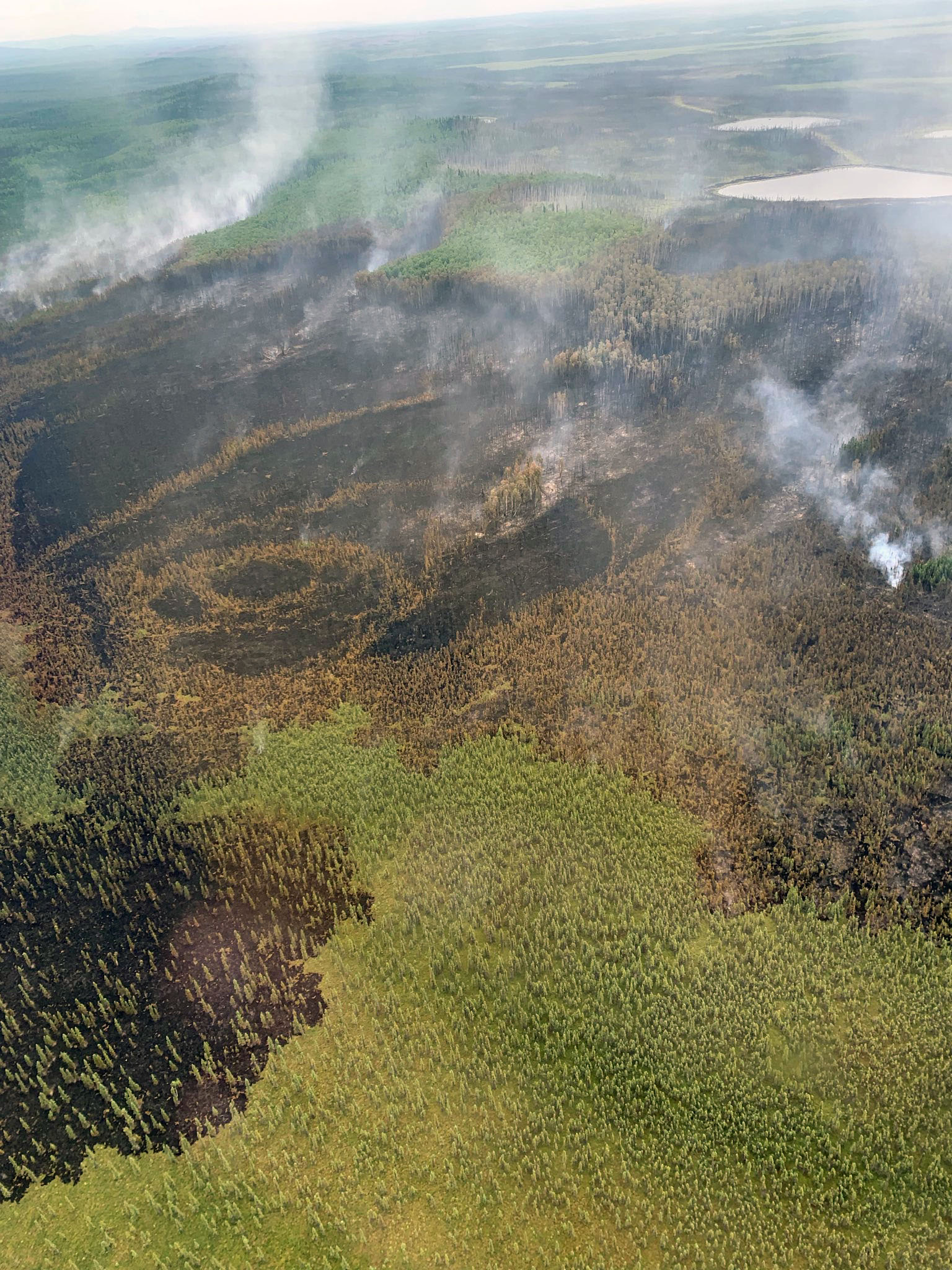 Aircraft returned on Sunday to address increasing fire activity on the north and northeast edges of the fire when it burned into a patch of black spruce. Air tankers dropped six loads of BlazeTamer and water scoopers doused the fire with multiple water drops. The water and BlazeTamer drops proved very effective in suppressing the fire.
