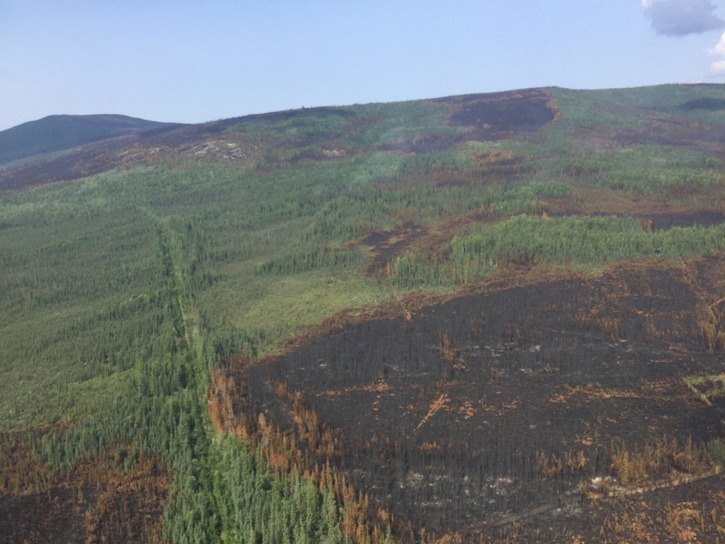 Crews observed minimal fire behavior today with only minor smoke drifting up from the interior. Thick cloud cover and high relative humidity prevented an increase in fire activity. As of today, the Hess Creek Fire has burned just over 271 square miles, about one quarter the size of Rhode Island. The Temporary Flight Restriction (TFR) was lifted Friday to allow for other aircraft in the area. However, a helicopter remains on hand should activity increase, and aerial resources are needed.