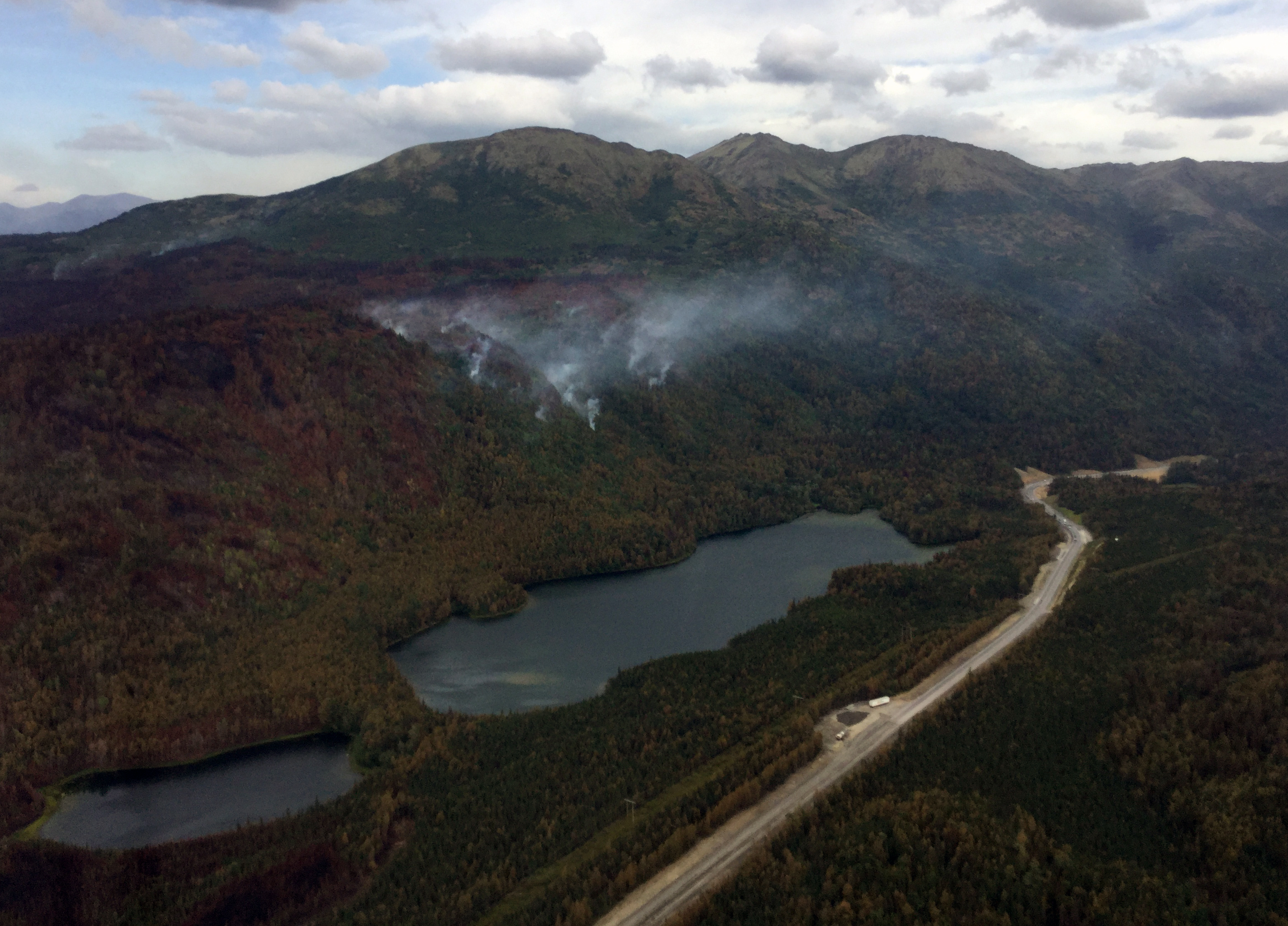 Smoke from the fire is visible from the Sterling Highway between mileposts 65 and 75. Motorists are advised to slow down and use caution driving through the fire area, turn on headlights when smoke is present, and be alert for other drivers potentially distracted by fire operations. Visit https://tinyurl.com/yxn6hmrq for current road conditions.
