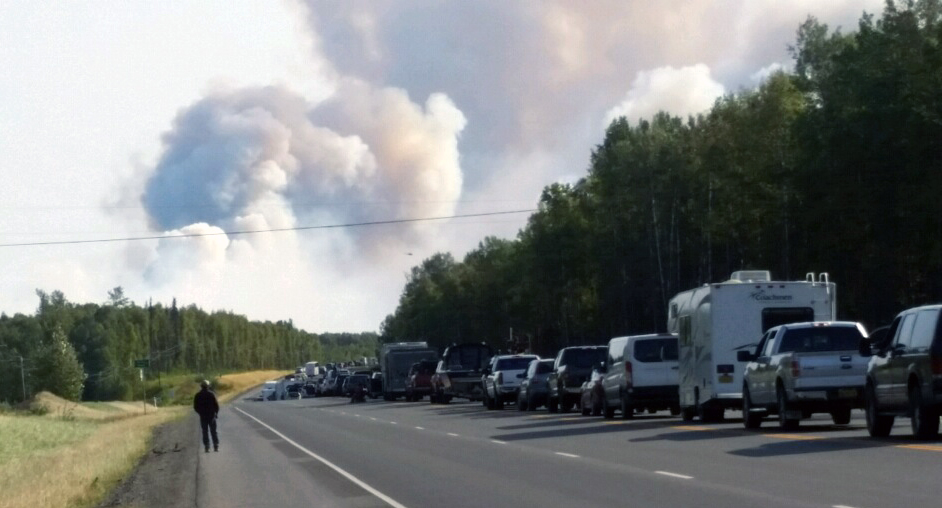 Smoke from the McKinley Fire billows in front of a line of traffic delayed along the Parks Highway. This photo was taken earlier today at milepost 95 looking north. Photo by Ted Altman