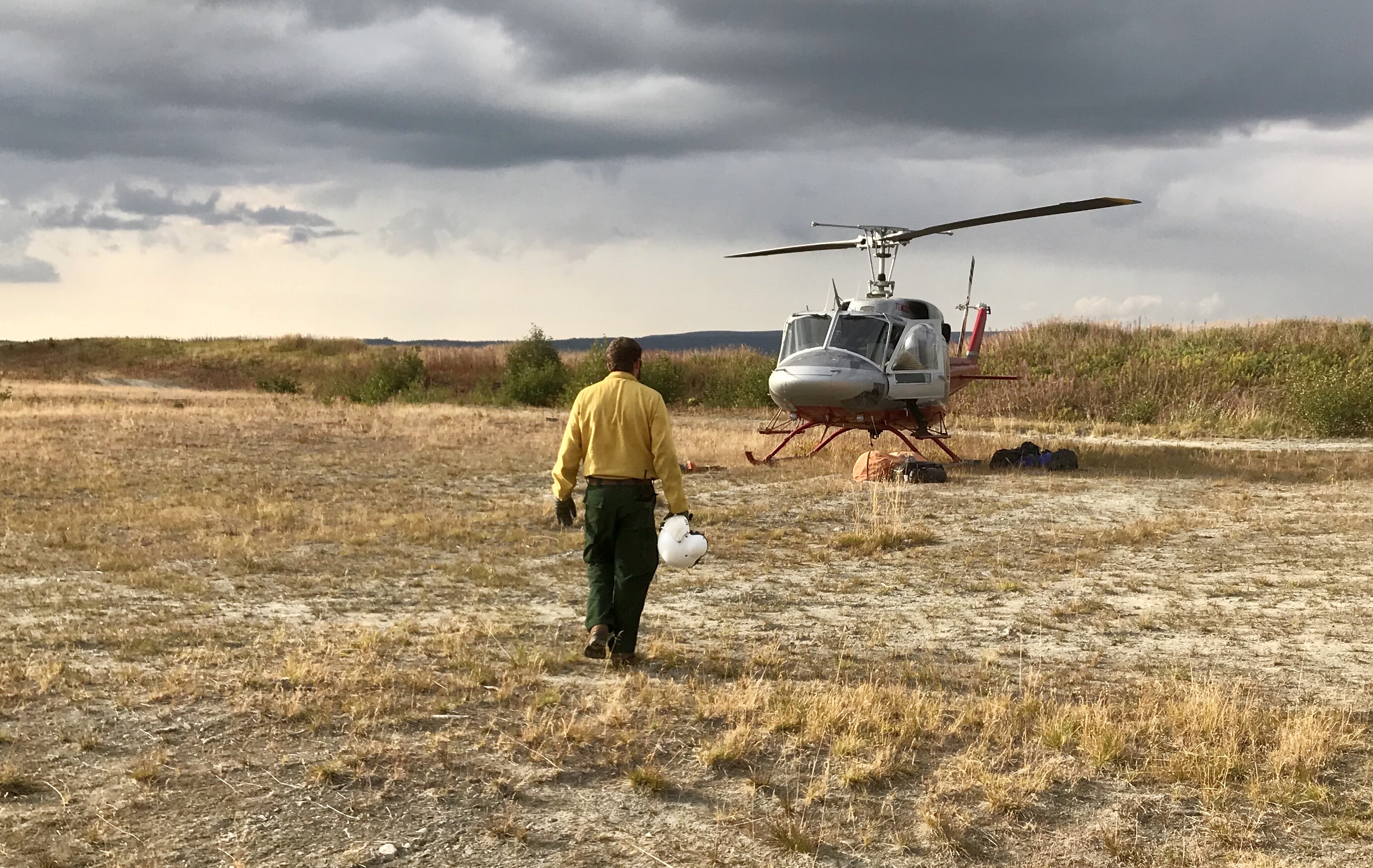 With the additional crews that arrived on the Caribou Lake Fire, fire managers expect to see the containment of the fire increase. There are currently 79 firefighters working to contain the fire with the goal of 100 percent containment. Although, the fire activity has been limited, firefighters continue to address fire along the perimeter’s edge with some occasional spot fires across the fire’s edge. A wind shift on Monday could increase fire activity on the south flanks of the fire, although minimal fire growth is expected over the next several days as the predicted cloud cover will help to moderate fire activity. Helicopters and firefighters will be using a portion of the gravel pit parking area on Basargin Road as a helispot in support of the Caribou Lake Fire. Fire officials are asking people to avoid parking in the area near the helispot for the safety of the firefighters and public.