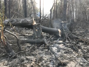 Crews cut hazard trees near edge of fireline on the McKinley Fire on August 22, 2019. Alaska .of Forestry photo