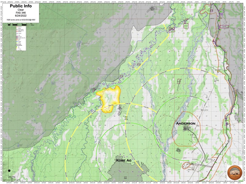 Clear, Alaska. – Warming temperatures led to an increase in fire activity today, causing the Clear Fire to grow and progress to the south. Denali Borough officials, under the advisement of fire managers, are this afternoon moving the following areas to the “Set” designation: