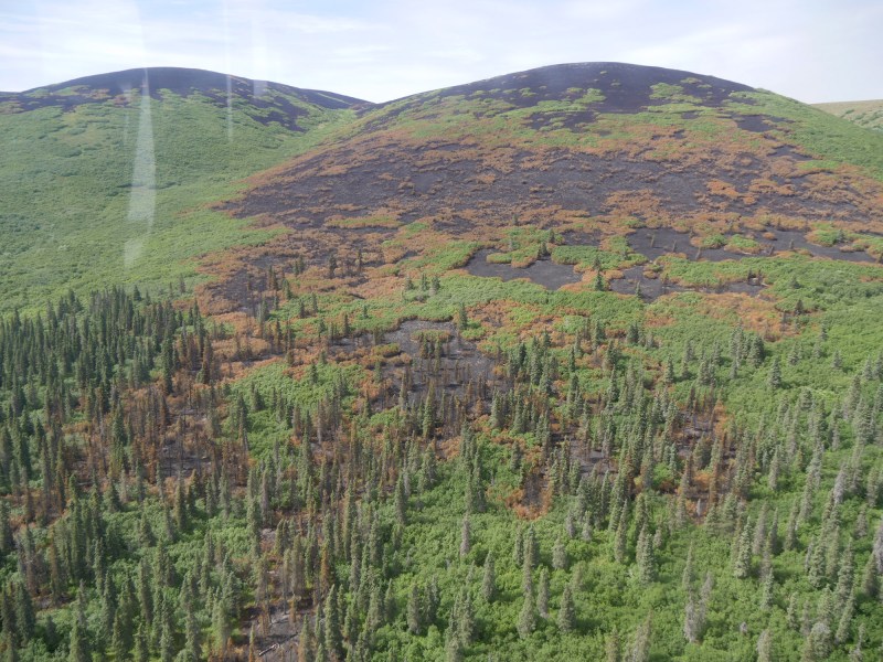 A reconnaissance flight over the Apoon Pass Fire on June 24 revealed no visible smoke or activity anywhere on the fire. Natural barriers surrounding the Apoon Pass Fire have halted fire growth, and the fire is no longer considered to be active.