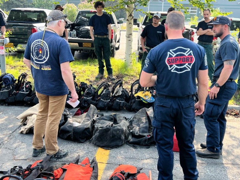 On Sunday morning, Bureau of Land Management Alaska Fire Service employee Hudson Plass inspected the Mooseheart Crew so it could be made available for its next fire assignment of the 2022 season.