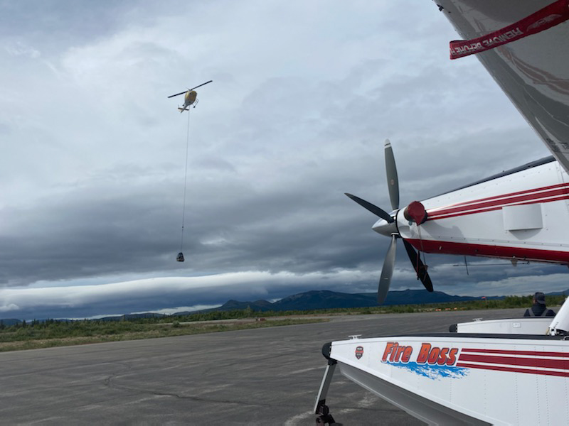 The Temporary Flight Restriction (TFR) remains in place over the southern portion of the planning area near Lake Iliamna. Aerial water drops and logistical air support remain active in this area when smoke and weather allow for safe flying. Fire Boss planes are working out of Lake Iliamna, as well as helicopters and other aircraft providing support to firefighting resources on the ground. Please avoid this airspace for public and firefighter safety.
