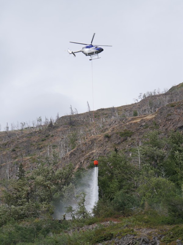 Alaska Division of Forestry firefighters have been able to contain and control the Beluga Fire. Video of helicopter 7AM dropping water on the Beluga Fire on Saturday July 9.