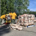 DNR Camp Crew 20 (George Captain Operator, Lee Captain, Banding and Crew Boss Karl David) rolling hose used on the Minto Lakes Fire, photo by Ken Kempter USFS