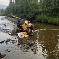Crews putting in pumps along the Chatanika river to assist in extinguishing spots and heat.