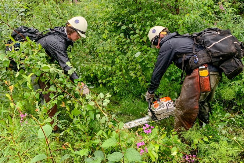 Main (#240) – Firefighters continued building fire breaks around the community of Ruby on Wednesday, following previously identified lines as part of their point protection strategy. The Rifle Helitack crew planned to boat back to the allotments west of the fire, weather permitting, to continue searching for and extinguishing hotspots along the fire’s edge. Minimal fire activity has been reported due to rain, cool temperatures and elevated relative humidity. No major changes in weather or fire activity are anticipated. The fire is 7 miles southwest of Ruby. It is 24,537 acres. Sixty-four people are assigned.