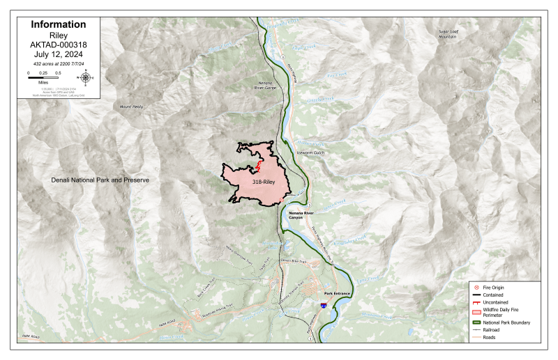 Temporary Flight Restrictions: A temporary flight restriction (TFR) remains in place over the Riley Fire until July 19th but has been modified. The Denali air strip remains closed to public use. Find more information at: 4/7281 NOTAM Details (faa.gov). It’s important to keep all unidentified aircraft out of the TFR area.
