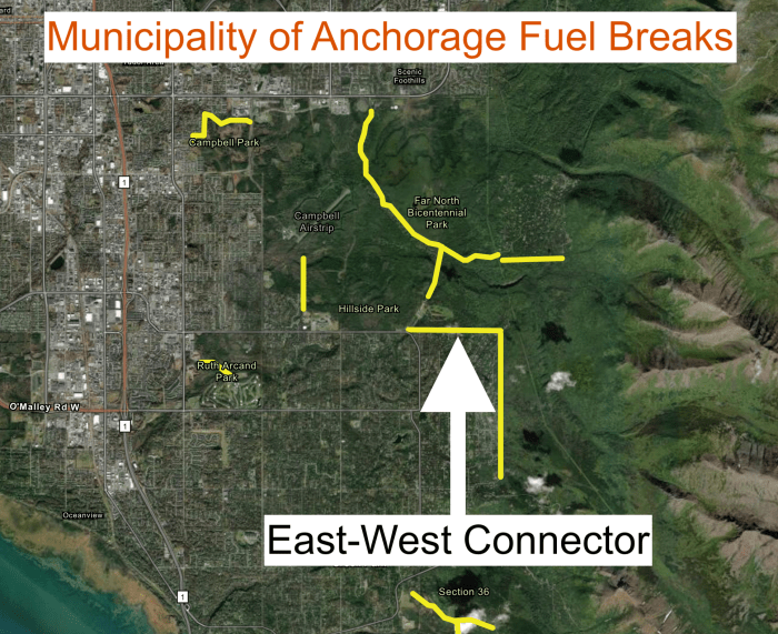 (Anchorage, AK) – With an early fire season declared in Alaska’s southern and southwest regions due to low snowpack and dry conditions, the Alaska Division of Forestry & Fire Protection (DOF) is working with the Anchorage Fire Department (AFD) Wildfire Division to implement a shaded “fuel break” in the Anchorage Hillside area extending from Hilltop Ski Area Road to Prospect Drive.