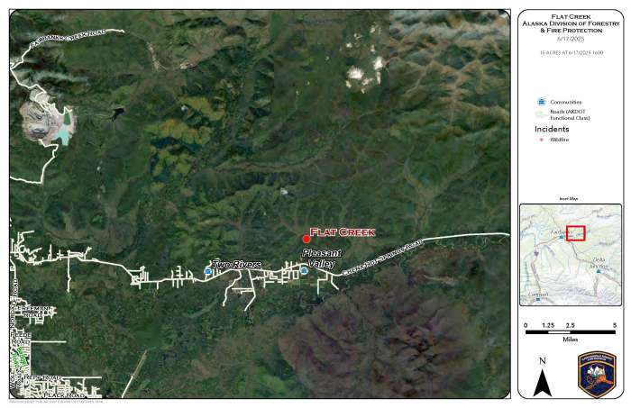 Update 3:30 pm –The Alaska Division of Forestry & Fire Protection (DOF) is responding to a new fire north of Pleasant Valley off mile 24 of Chena Hot Springs Road.