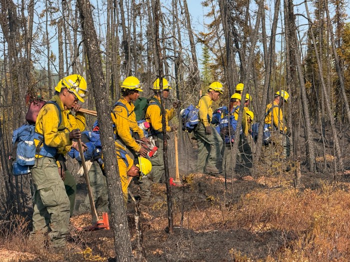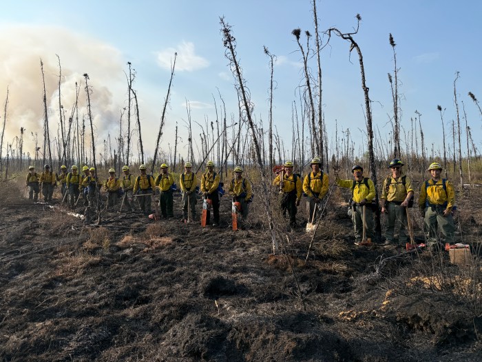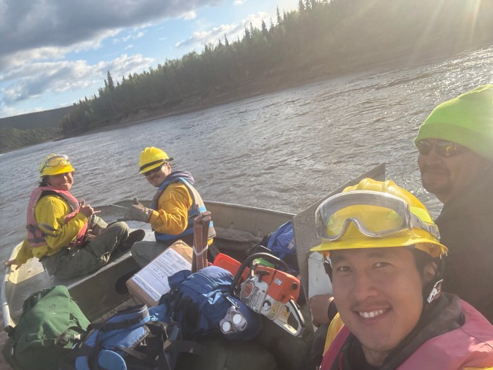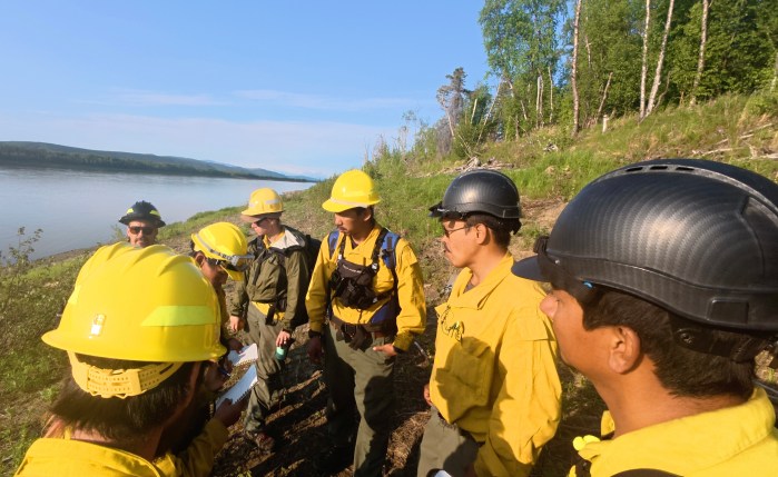 Crews are working directly on the fire’s edge, cutting saw line and utilizing pumps and hoses to establish further containment. Smokejumpers are focused on the southwest corner of the fire, conducting suppression efforts with hand tools. On the north side, the BLM Alaska Fire Service (BLM AFS) Chena Interagency Hotshots are operating alongside Division of Forestry & Fire Protection (DOF) Gannett Glacier Type 2 Initial Attack Crew where they are clearing vegetation and installing protection measures around Native Allotments that remain outside of the fire’s perimeter.