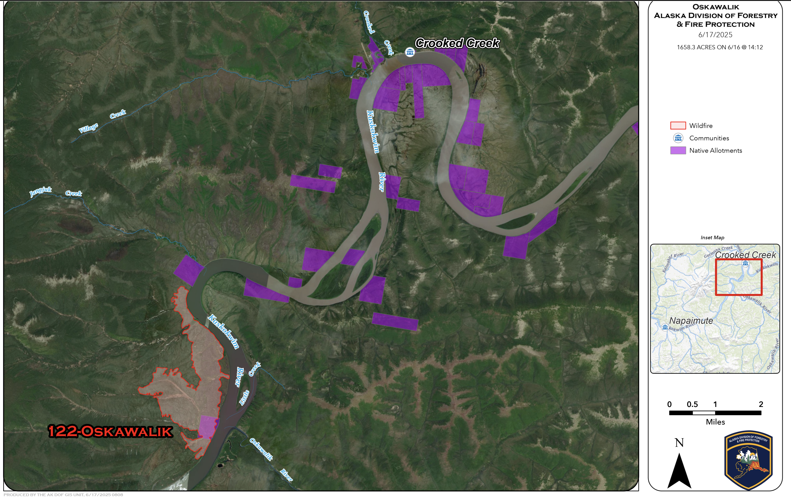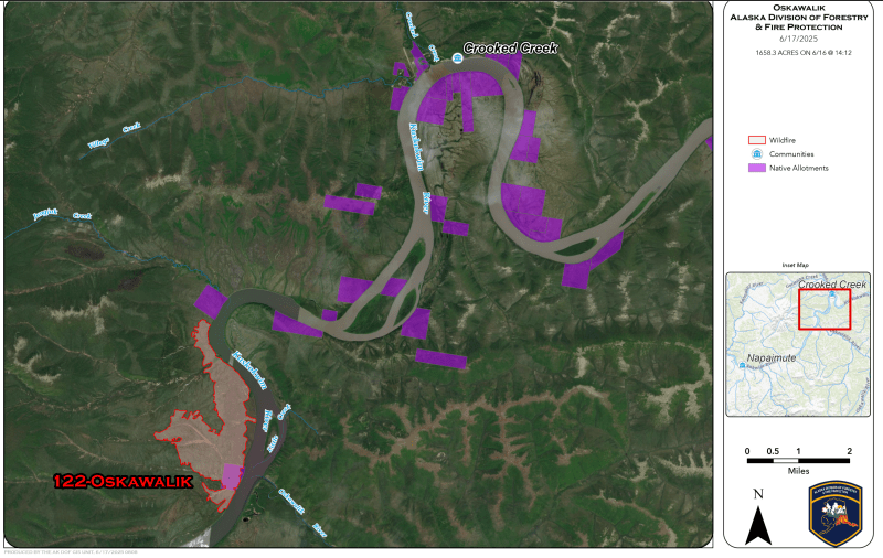 For more information on the Oskawalik Fire (#122) please call the Division of Forestry Coastal Public Information line at (907) 795-4285.