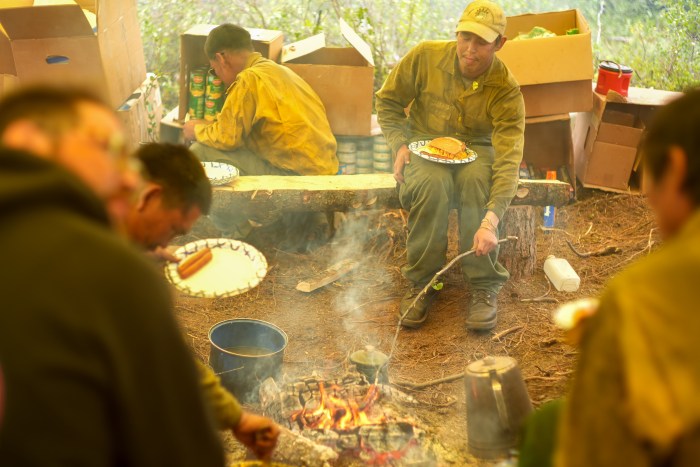 Firefighters experienced a quieter operational day on the Nelchina Glacier Fire (#226), located 3 miles south of the Eureka Roadhouse, due to significant rainfall and cold weather. Currently, there are 72 firefighters assigned to the fire. With minimal fire growth thanks to wet and cool conditions, Crews rotated into camp for safety and refurbished fire gear. They utilized this opportunity to improve operational plans and focus on personnel well being after many days of intense firefighting. Despite the wet conditions, crews continue to work towards containment objectives.