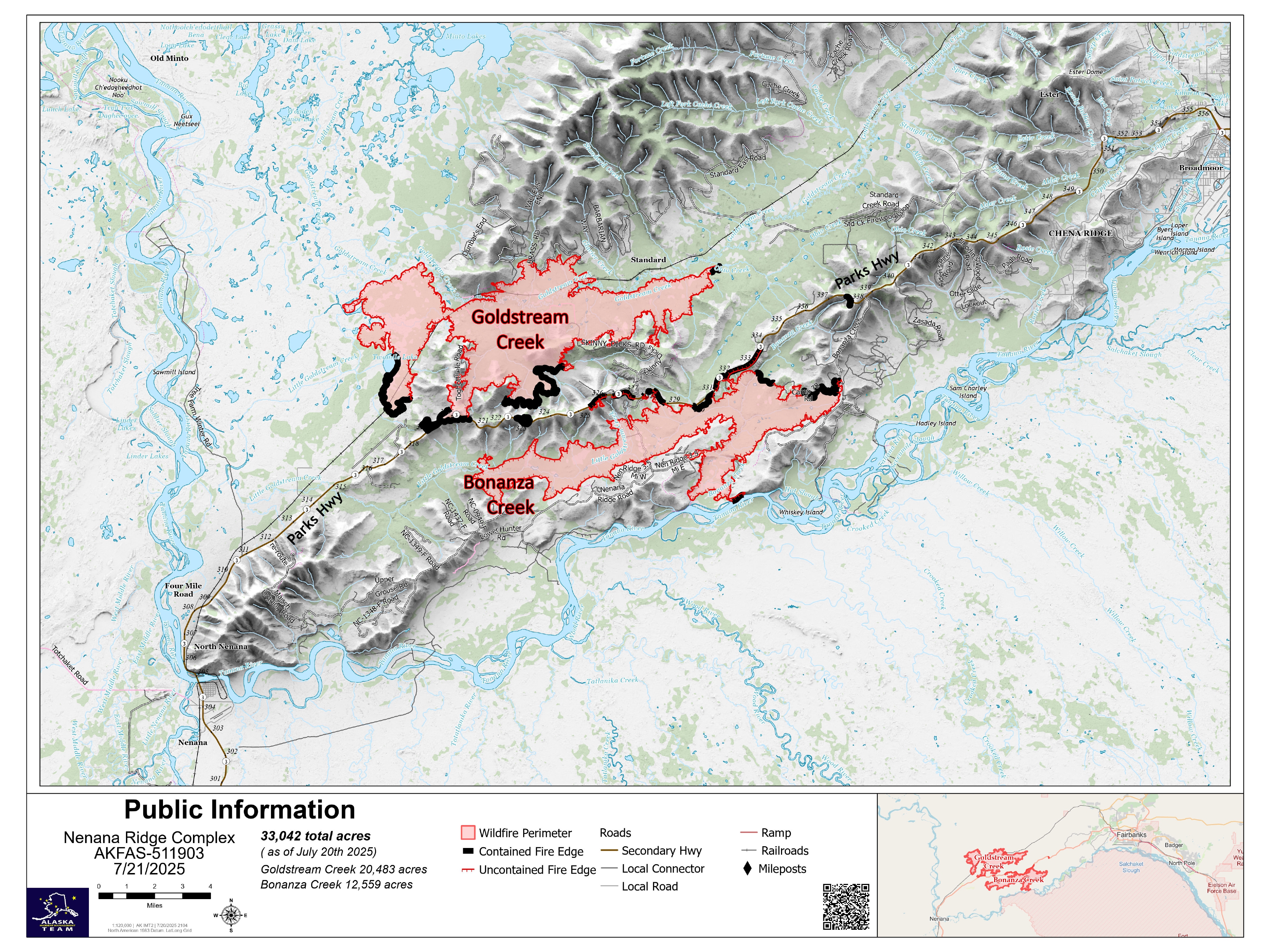 - Inside the Borough: Evacuation zones Parks Mile 338-342, Old Nenana Highway, Standard Creek, Old Ridge Trail, and Cache Creek Road.