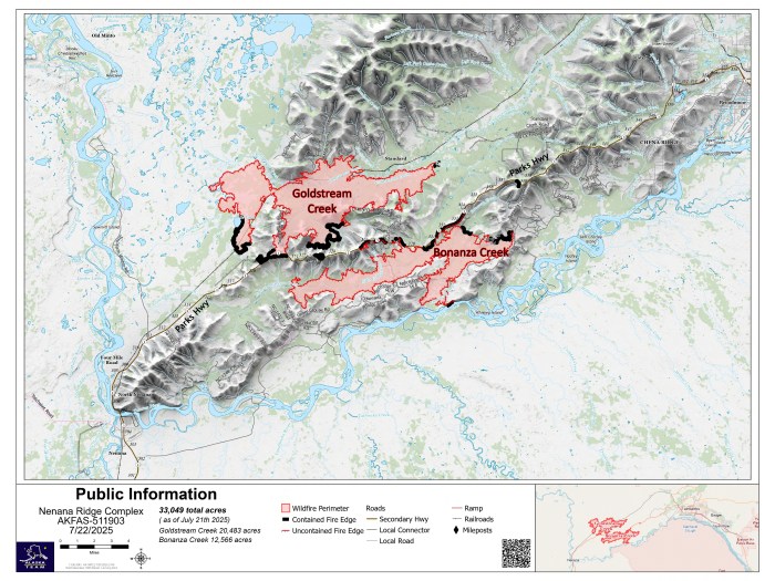 - Inside the Borough: Evacuation zones Parks Mile 338-342, Old Nenana Highway, Standard Creek, Old Ridge Trail, and Cache Creek Road.