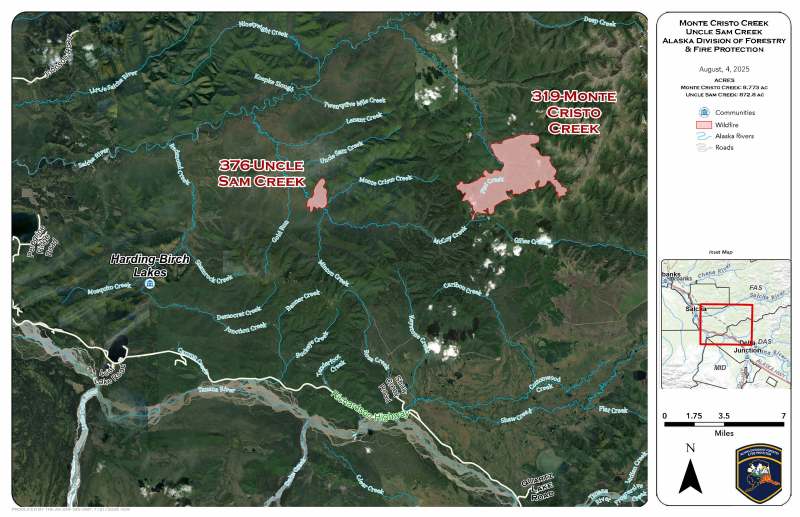 Firefighters continue to make progress on the Uncle Sam Creek Fire. The White Mountain crew is actively engaged on the northern edge, extending to the northwest corner of the fire. A dedicated squad is focused on containing the northern part of the fire and has improved a nearby helicopter spot, which is essential for receiving supplies and for any need for evacuation access.