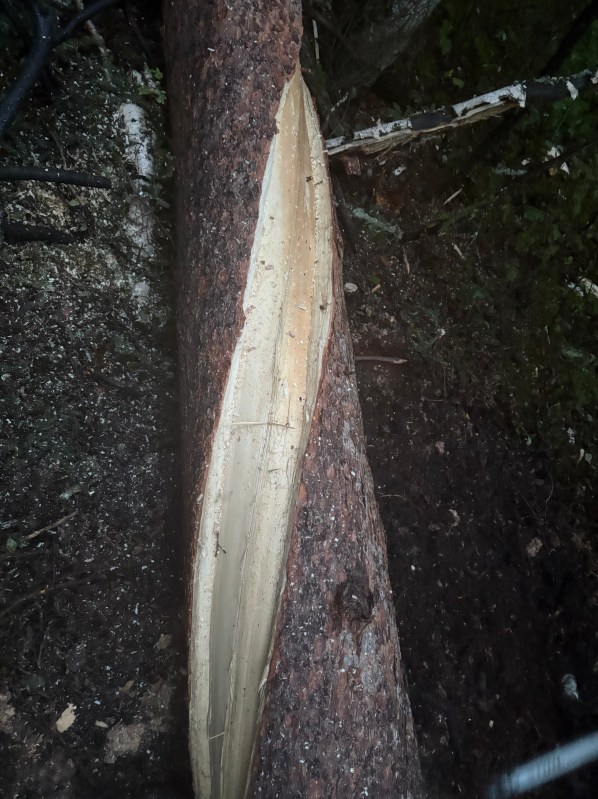 Last night, Tuesday, August 5th around 9:00 PM, a member of the public reported a smoke column near milepost 24 on Chena Hot Springs Road. A Division of Forestry & Fire Protection helicopter and engine were dispatched to the location, where they discovered a tree that had been struck by lightning . The holdover fire from a previous day lightning storm caused the tree’s root system to smolder, creating the smoke.