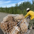 A firefighter receives a sling load of supplies and equipment from the Saint George Creek fire. The Alaska Division of Forestry Type 3 Short Team assumed command of both fires on the morning of July 19. As of 8:00 a.m…. Read More ›